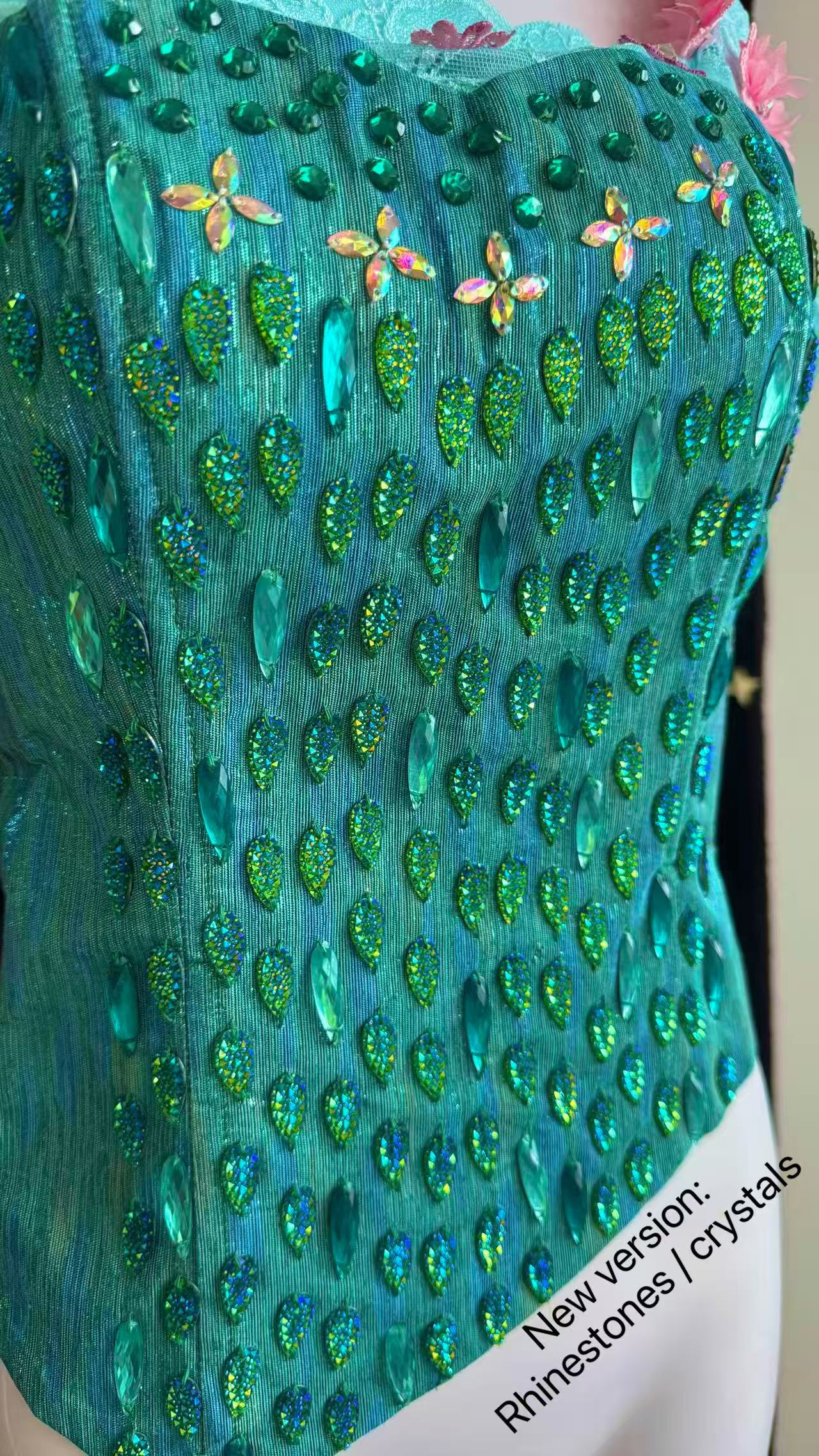 DESCRIPTIONcorset sleeves and skirt for frozen fever elsa big fish tail skirt, stretch sleeves, Lace up at back, corset supported by fishbones and bra..